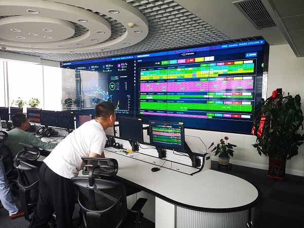 集控中心主要集中控制了新疆哈密、甘肅武威、甘肅敦煌、甘肅瓜州、寧夏光伏的五個電站,顯示屏顯示主要內(nèi)容為:電站發(fā)電量、正常生產(chǎn)機組、檢修機組、限電機組生產(chǎn)情況。